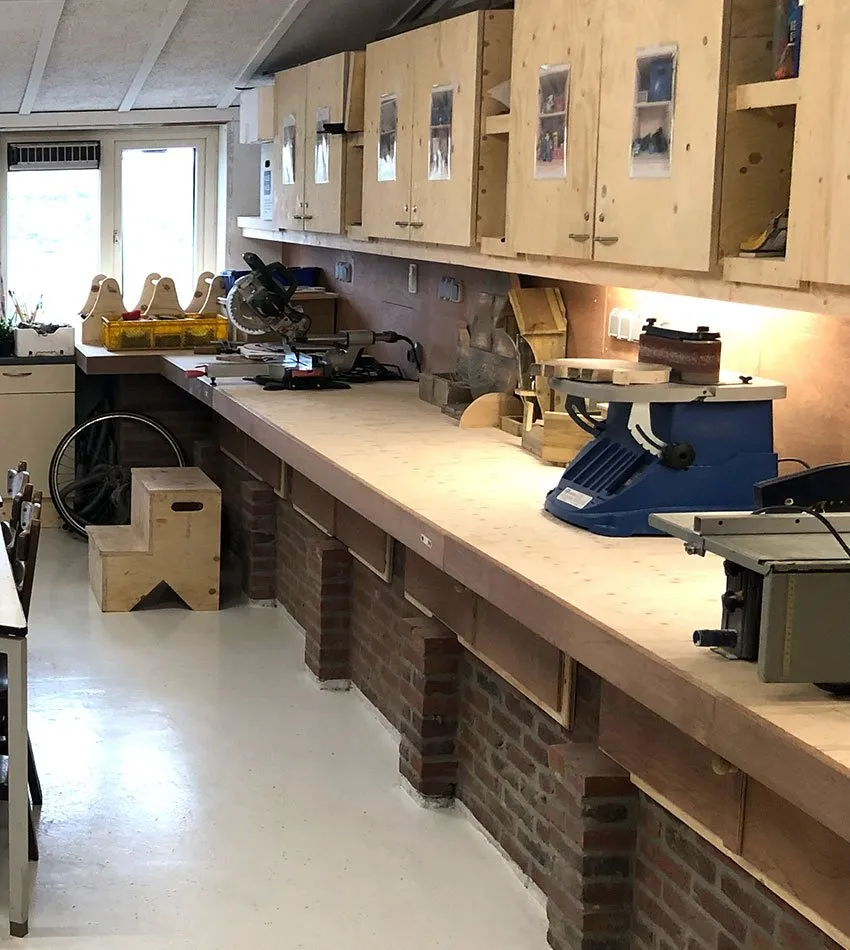 De houtbewerking en knutselruimte is ontstaan vanuit onze deelnemers. We hadden een ruimte beschikbaar en hebben de input gevraagd van onze deelnemers wat ze nog graag wensten op de locatie. Het merendeel stemde voor een houtbewerking. Hier zijn we mee aan de slag gegaan en dit hebben we dan ook samen gerealiseerd met de deelnemers. Een ruimte om trots op te zijn en waar een ieder bezig kan met zijn of haar creatieve ideeën.